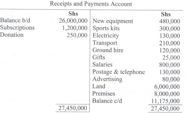 c) Below is a summary of receipts and payments of Yeffe Womens’s Club for the year ended 31st December 2016.