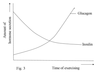 28. Figure 3 is a graph showing the effect of prolonged exercise on the secretion of insulin and glucagon hormones in a human being.