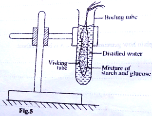 30. A solution containing starch and glucose was put in a visking tube in the set-up shown in figure 5 and left to stand for 30 minutes