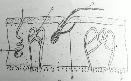 b) Using any one observable feature on the diagram, suggest the type of temperature condition the skin is responding to. State the observable feature as a reason for your answer.