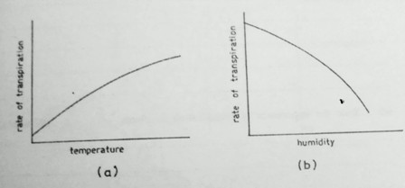 b) Figures 1 (a) and (b) show how temperature and humidity affect the rate of transpiration.