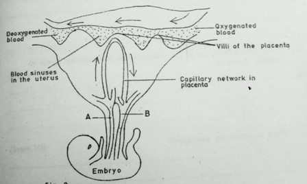 32. Fig.2 shows the relationship between blood supply of the embryo, placenta and uterus.