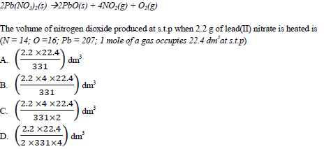 Lead(II) nitrate decomposes on heating according to the following equation.