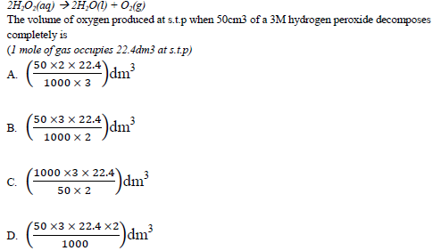 40. Hydrogen peroxide decomposes to give oxygen according to the following Equation.