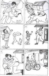 54. . Pictures A- F tell a story. Study them carefully and then write one sentence to describe what is happening in each picture.