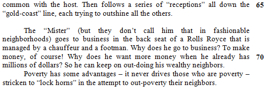 i) “…it never drives those who are poverty stricken to “lock horns”…? (lines 72-73)