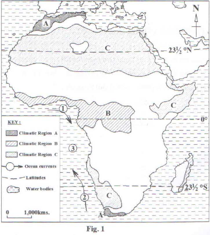 2. Study figure 1, map of Africa provided and answer the questions that follow.