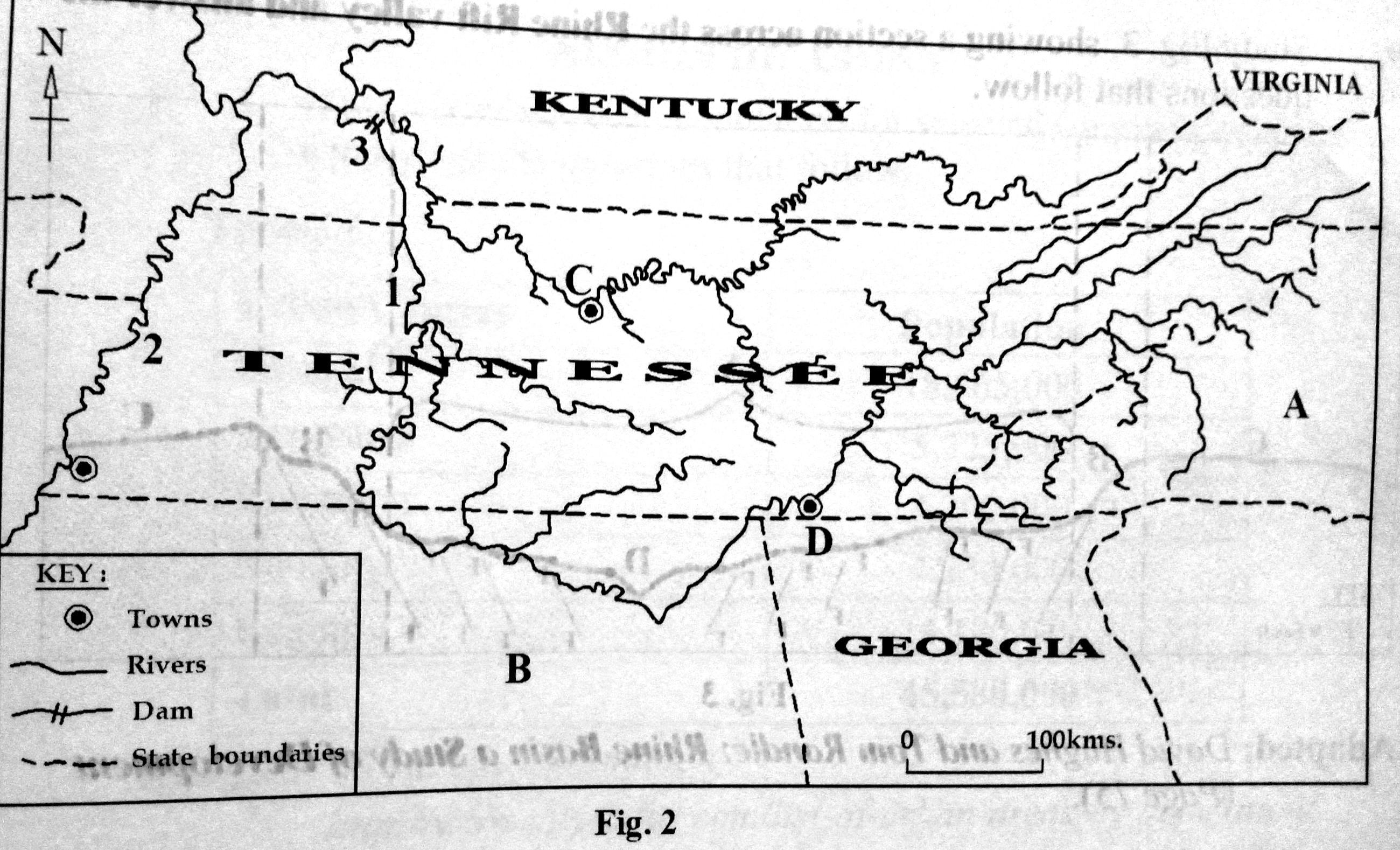 7. Study Fig 2, map of Tennessee River Valley and answer the questions that follow