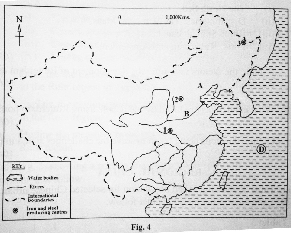 12. Study fig 4, mapof China provided and answer the questions that follow
