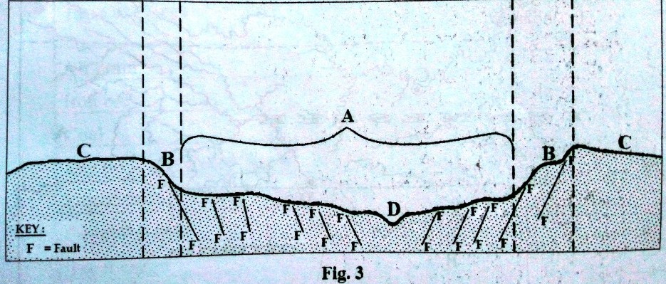 9. Study Fig 3, showing a section across the Rhine Rift valley and answer the questions that follow.