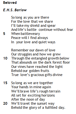 d) With reference to the poem, describe the kind of beloved that you would like to have.