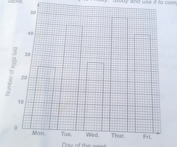 17. The bar graph below shows the number of eggs laid by chicken in opio’s farm from Monday to Friday. Study it to complete the table.