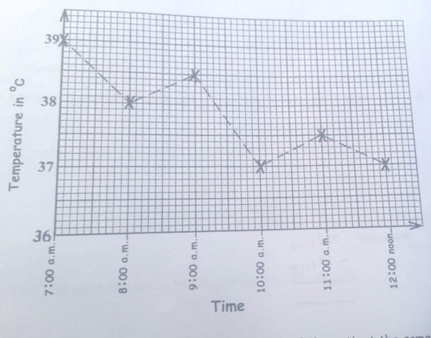 r - The graph below shows the temperature of a patient in a hospital taken from 7:00 a.m. to 12:00 noon in a day. Use it to answer the question that follows.