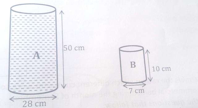 Find total number of full cups of water she served the visitors (use π=22/7)