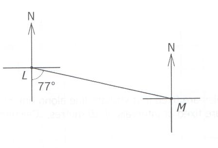 14.The diagram below shows the positions of two towns L and M. Use it to answer the question that follows.