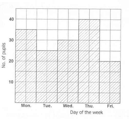 19. The graph below shows the number of pupils present in a class of 40 pupils in a certain week. Study it and answer the question that follows.