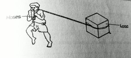 29. In the diagram, Moses is pulling a load along the ground surface as shown below.