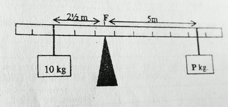 45. The diagram shows a lever which is balanced, calculate the weight of P.