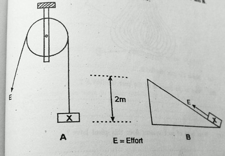 41. The diagram below show two types of simple machines labelled A and B. Use them to answer the questions that follow.