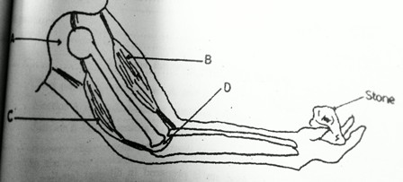 53. The diagram below shows the human arm holding a stone. Use it to answer the questions that follow.