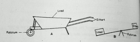 c) Give any one example of a machine which works in the same way as the machine marked with letter B.