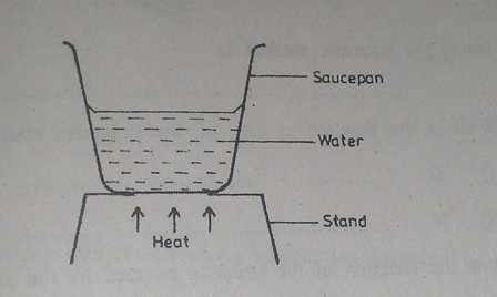 44. The diagram below shows a saucepan with some water on fire. Use it to answer the questions that follow