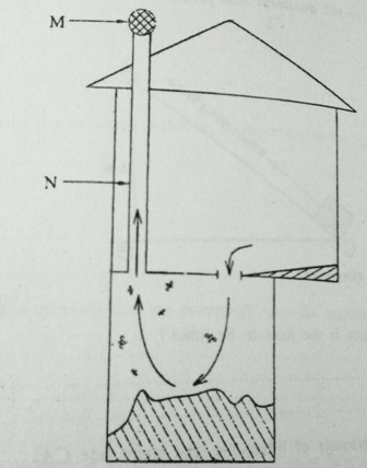 55. The diagram below is of a Ventilated improved Pit (VIP) latrine. Use it to answer questions that follow.