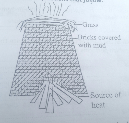 (b)Give one reason why the bricks are covered with mud before firing starts.