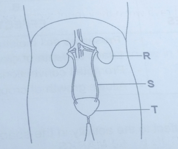 42. The diagram below is of a human urinary system. Study and use it to answer the questions that follow.