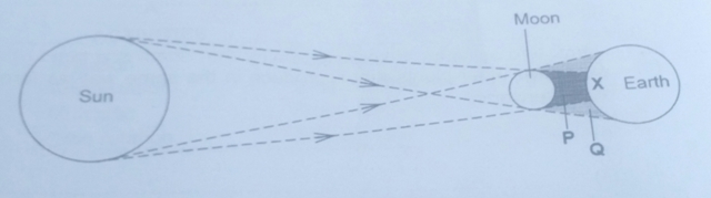 47. The diagram below shows a type of eclipse. Study and use it to answer the questions that follow.