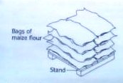 34. The diagram below shows bags of aize flour in a store. Use it to answer the question that follows.