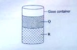 42. The diagram below shows a glass container into which water and cooking oil were poured. The two liquids settled as shown. Study and use it to answer the questions that follow