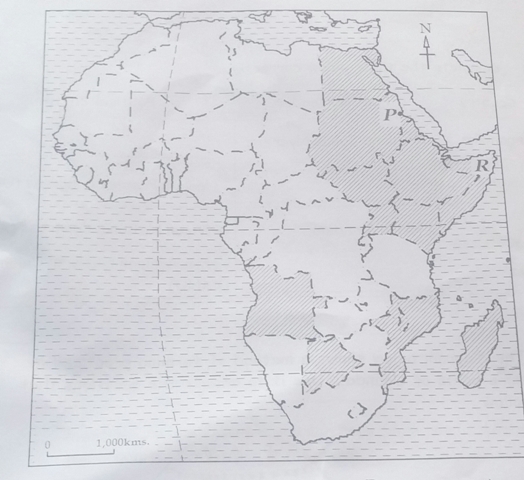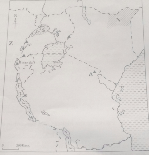 43. Study the sketch map of East Africa below and answer the questions that follow.