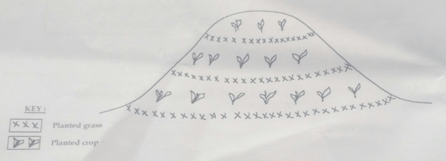 (b)state the importance of the planted grass in the method of farming shown in the diagram above