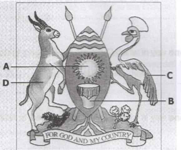41. The diagram below is of the Uganda Coat of Arms. Use it to answer the questions that follow.