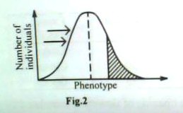 10. Which one of the following would happen to individuals of the population in the shaded area of figure 2 if selection pressure continued for generations acting on the phenotype?