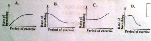 7. Which one of the following graphs shows the correct relationship between the rate of breathing with increase in amount of exercise in an athlete?