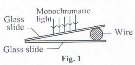 c) An air wedge is formed by placing two glass slides of length 5.0cm in contact at one end and a wire at the other end as shown in figure 1.