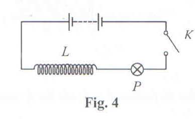 c) An iron- cored coil having a low resistance and high inductance is connected in series with a filament lamp P. The coil and the lamp are then connected across a d.c supply as shown in figure 4.