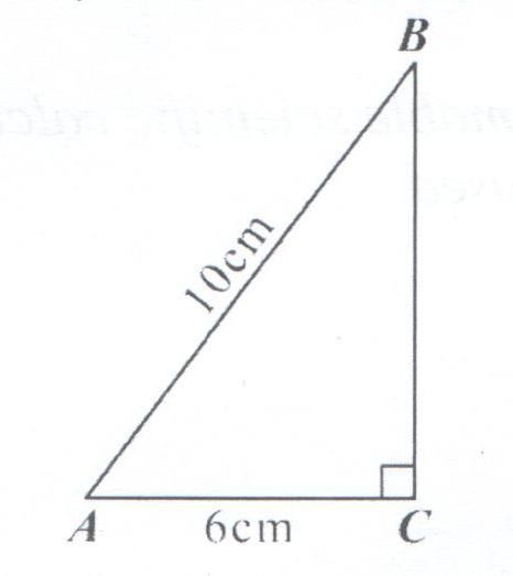8. In the right angled triangle ABC below, AB = 10cm and AC = 6cm