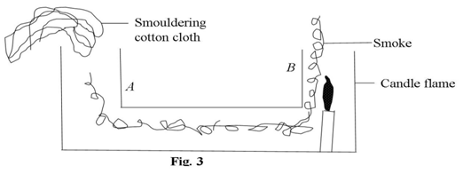 Explain why smoke from the smoulding cotton cloth is seen to enter through cylinder A and come out through B.