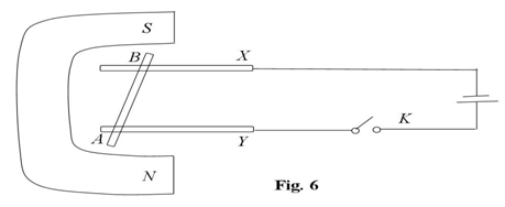 The rails X and Y are placed between the poles of a U-shaped magnet.