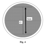 (c) Figure 4 shows the appearance of the screen of a cathode ray oscilloscope when an a.c Voltage is connected across the Y-plates. A vertical trace of length 4cm is formed. If the Y-gain is set at 5Vcm-1, find the peak voltage of the a.c voltage