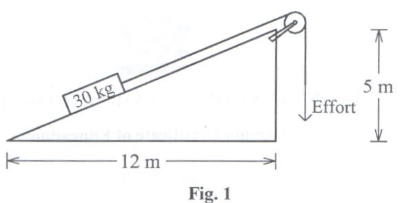 b) Figure 1 shows a mass of 30kg being raised to the top of the incline.
