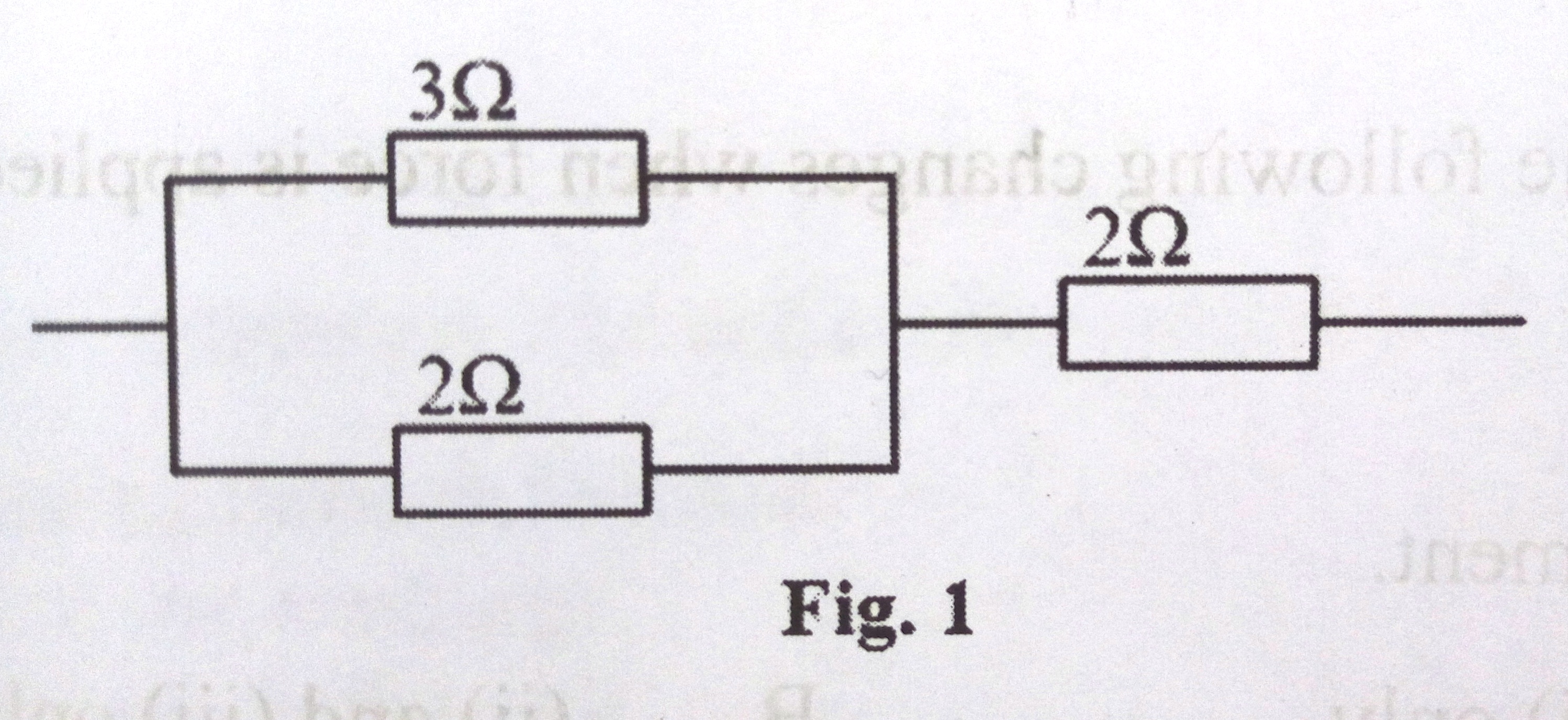 15. Figure 1 shows a circuit diagram with three resistors of 3Ω, 2Ω and 2Ω.