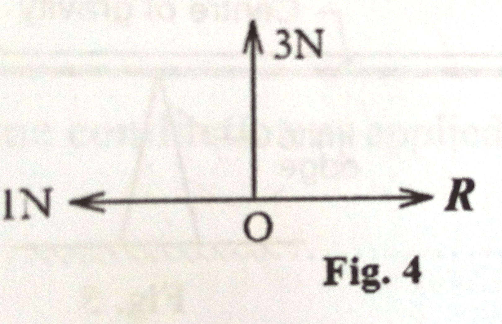 35. Figure 4 shows three forces of 1N, 3N and R acting at a point O. Find the magnitude of R requires to produce a resultant force of 5N
