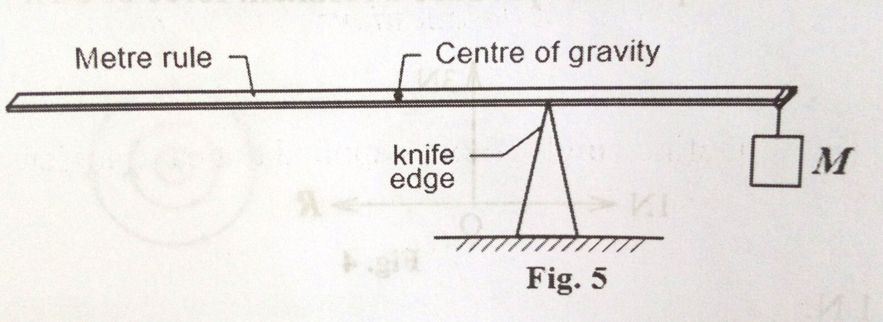 39. Figure 5 shows a metre rule on a knife edge when a mass, M is hanged at one end.