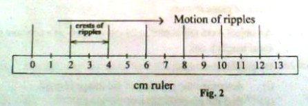 b) Figure 2 shows the position of crests of ripples in a ripple tank
